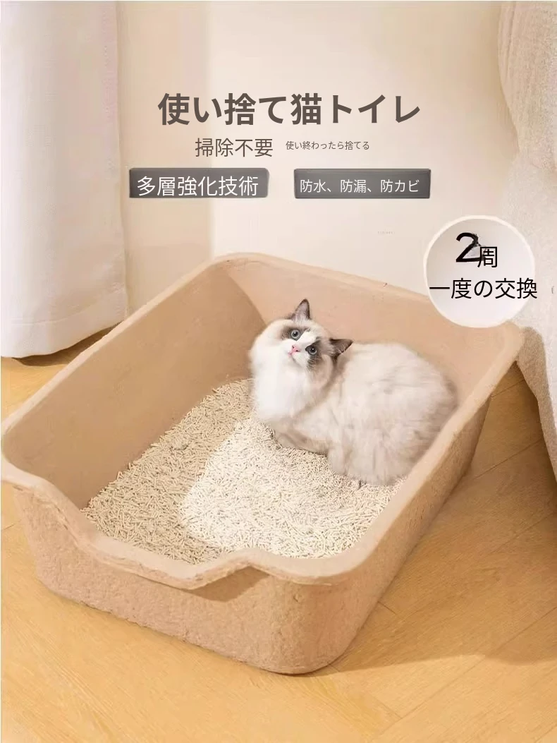 微舒の超大型使い捨て猫トイレ - 持ち運び便利で外出にも最適!防水設計で安心、オープンタイプの猫砂盆。愛猫の快適なトイレタイムを実現します!